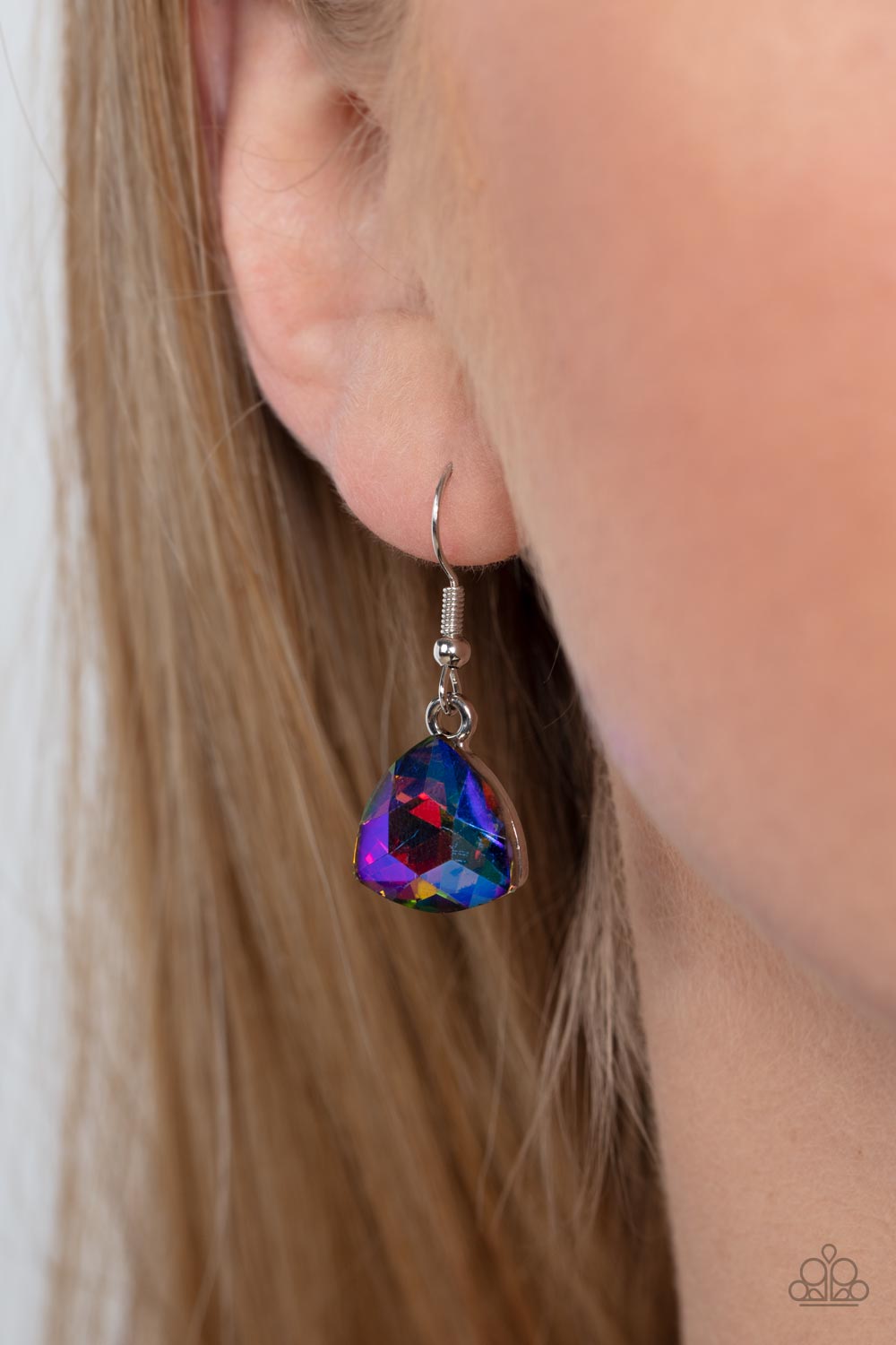 A collection of dreamy trilliant-cut rhinestones in iridescent shades of blue and pink fall in line along the collar in a majestic finish. Features an adjustable clasp closure. Due to its prismatic palette, color may vary.